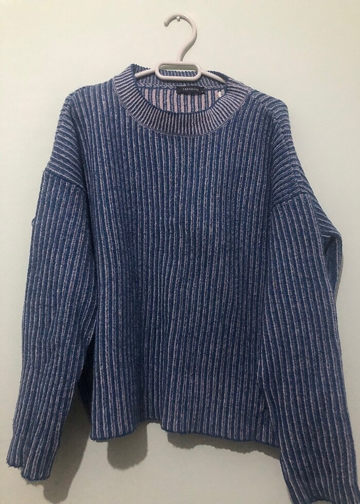 Oversize yumuşak mavi pembe kazak