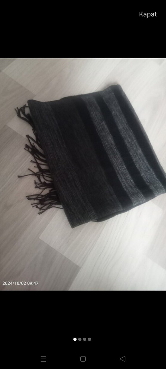 Yumuşak yün kumaştan yapılmış, siyah ve gri tonlarında. Bohem tarzda, püskül detaylı, retro ve hippie stilleri için uygun.