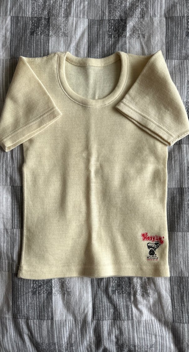 Pastel beyaz renkte, kısa kollu ve yuvarlak yaka çocuk atleti. Yumuşak kumaştan üretilmiştir ve alt kısmında küçük "Hasyun" logosu bulunur.