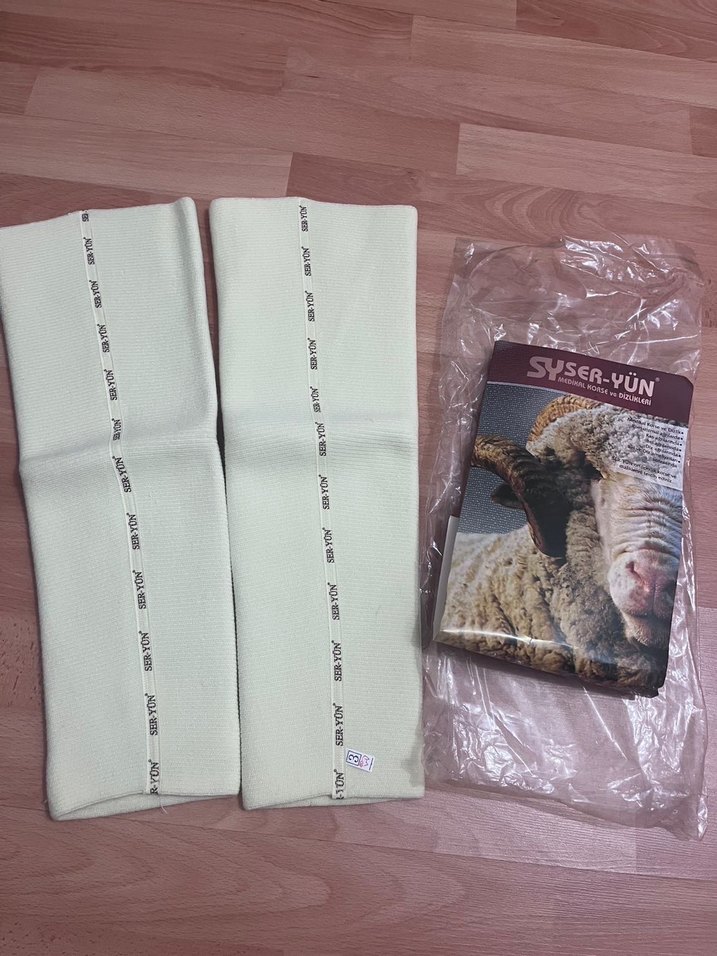 1 çift yün dizlik krem renk 3 beden sıfır poşetinde üründür.