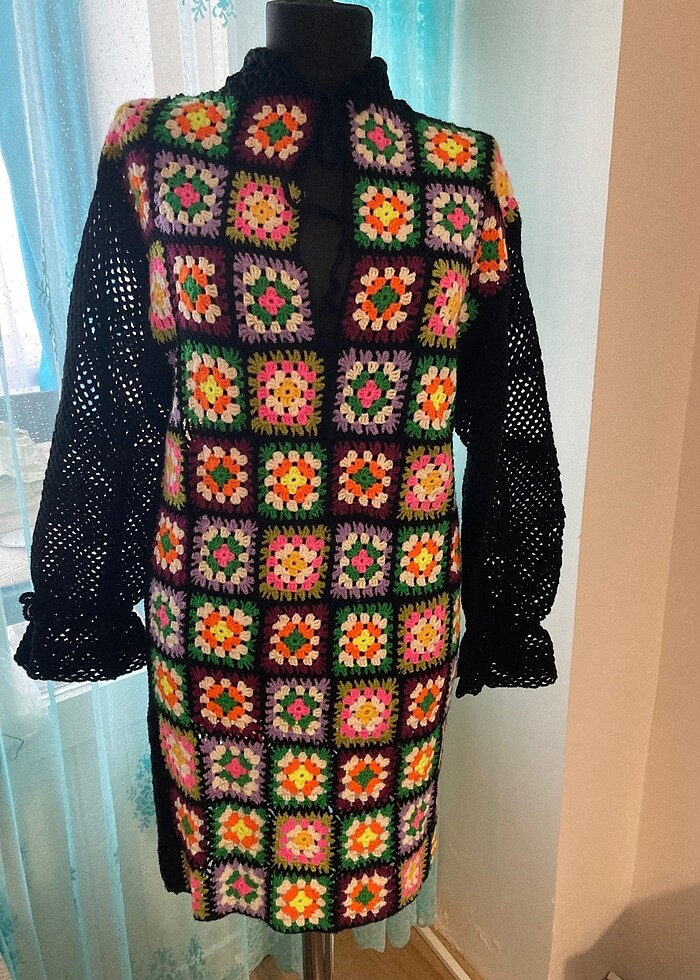Yün elbise kapüşonlu el işi / 38/40 beden