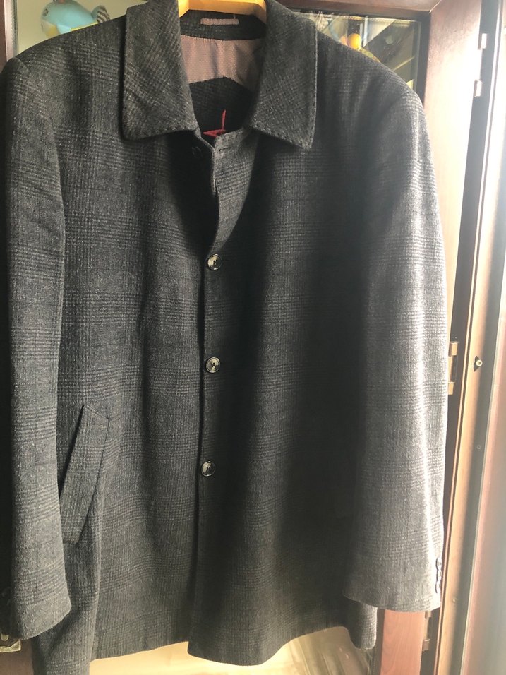 XL BEDEN EKOSE ANTRASİT (FÜME) WOOL AND CASHMERE İTALYAN YÜN KUMAŞ KABAN. SAYILI GİYİLMİŞTİR. DÜĞMELİDİR. HEM KLASİK HEM SPOR GİYİME UYGUNDUR. ÖLÇÜLER FOTOĞRAFLARDA MEVCUTTUR.
