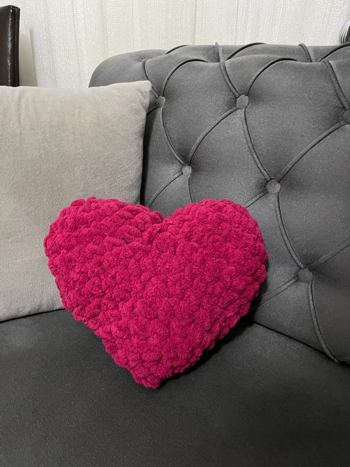 Yumuşak yünden yapılmış, kalp şeklinde pembe çocuk yastığı. Dokulu yüzeye sahip ve desensizdir ALİZE PUFFY . ️