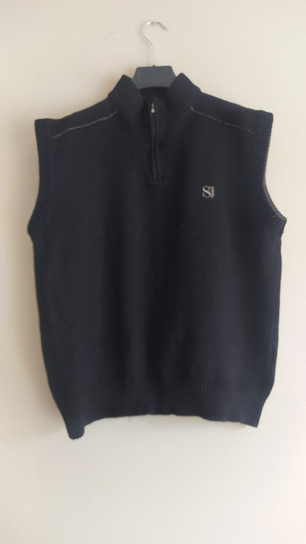 Orninal Sabri Özel kalın agir yün kazak yelek mont Düz siyah, yarım fermuarlı, bisiklet yaka, triko yeleği. Rahat ve şık sokak stili için uygun. Yeni hiç giyilmemistir mağazada 4-5 bin üçte bir fiyata Beden M ancak L- xl da giyebilir ebat Boy ense yakadan 65cm Göğüş koltukaltı dan 57-(esnek 60) cm
