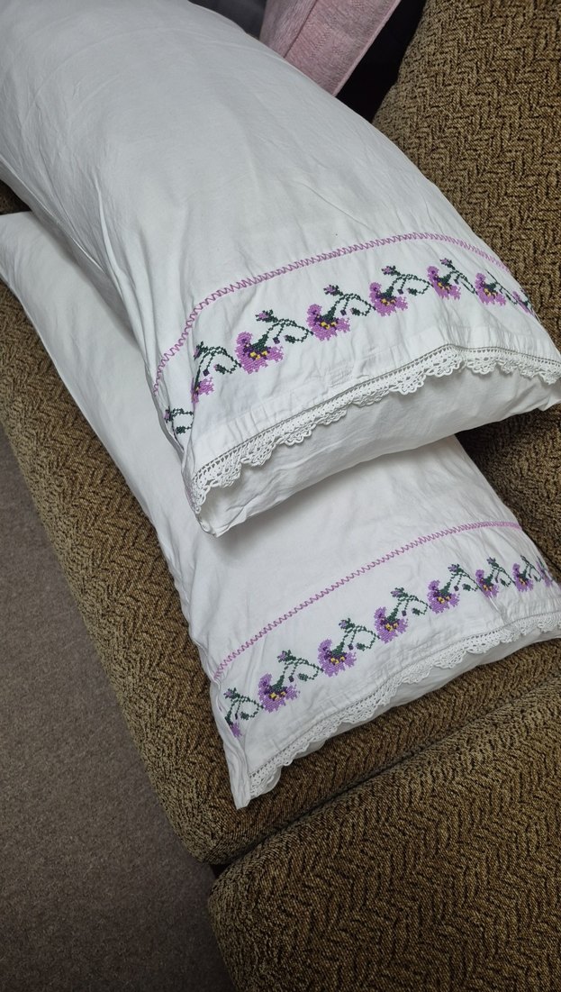 Uyku kalitenizi artırın.. tertemiz el emeği ile yıkanmış doldurulmuştur.. Pastel renkli nakışlı çiçek desenleri ve dantel detaylı beyaz yastık.. kılıfları ile birlikte.. Yumuşak ve dekoratif, zarif bir dokunuşla uyku sağlar.