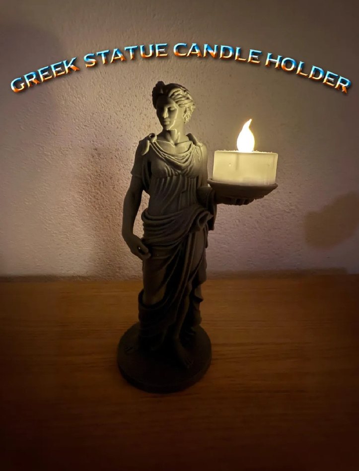 Yunan heykeli şeklinde siyah figür, mum tutan şık bir mumluk olarak tasarlanmıştır. ️