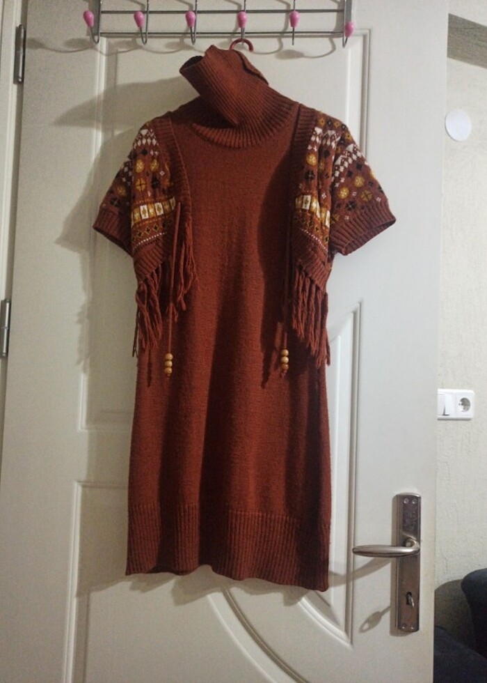 Yünlü boğazlı tunik elbise