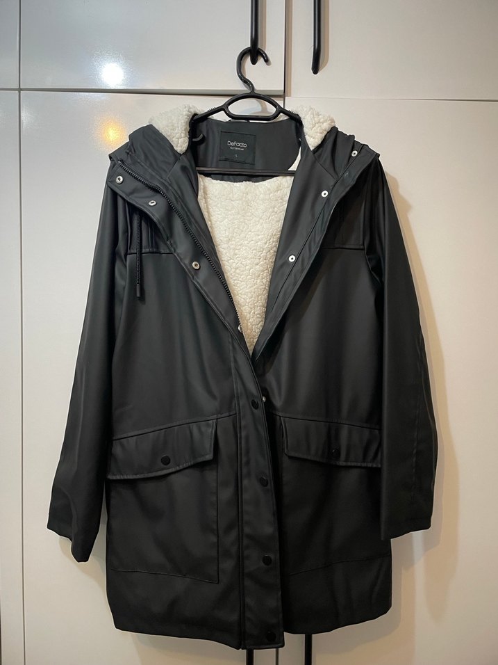 hiç giyilmedi içi yünlü yumuşacık dışı deri mont yağmurluk herhangi bir problemi yok s_m beden rahatlıkla giyebilir