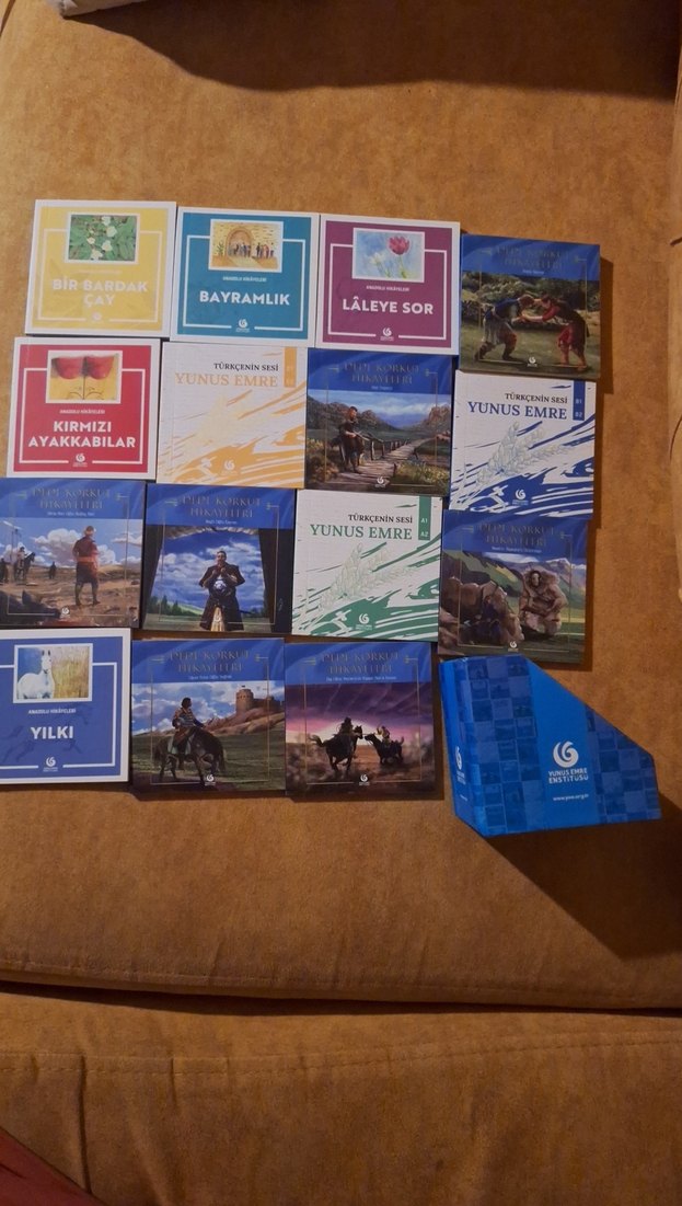 Yunus Emre Enstitüsü'ne ait bu okuma kitapları okuma becerisini destekleyecek kültürümüzü destekleyecek çeşitli hikayeleri sunar. Hikaye kitaplari ince ve el kitapçığı boyutunda küçüktür taşınması kolaydır.