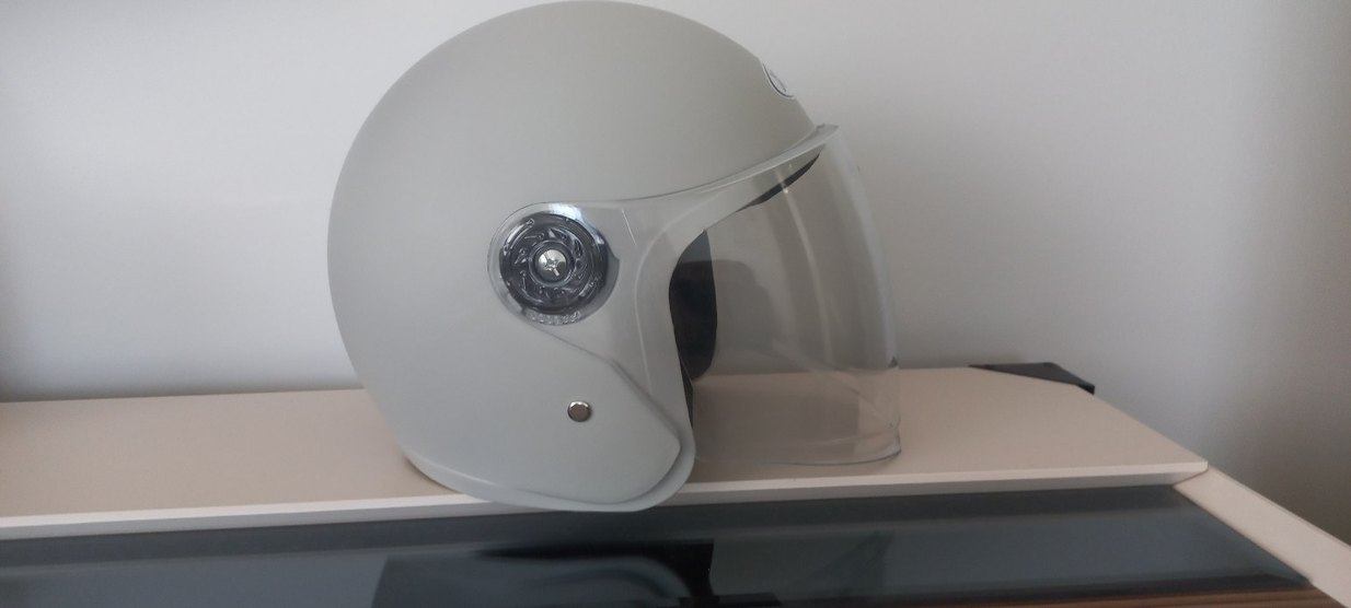 Diger gri renkli, minimalist tasarımlı motosiklet kaskı, metal detaylı ve tokalıdır. Düz tarzı ve şeffaf vizörü ile koruma sağlar. ️