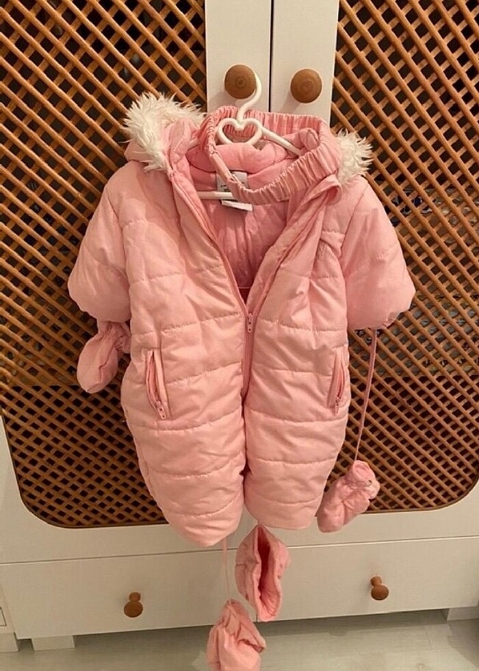 2-4 ay 62 cm’dir. Almanya’dan hediye gelmiştir. Çok az kullanılmıştır. İçerisinde eldivenleri ve patikleri kemeri mevcuttur. Çok korunaklı kaliteli bir üründür.