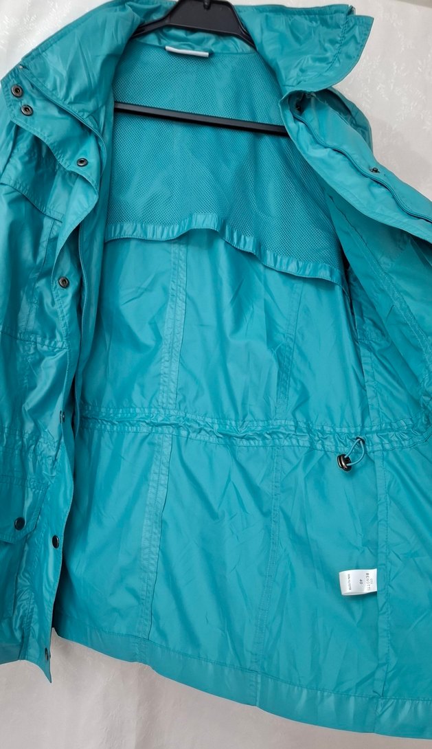 **Yurt dışı ürünü Nil yeşili renk tonda Yağmurluk.** Kullanılmamıştır, herhangi bir deformasyon yoktur.**Kapüşonu sabittir.** 2 kol altı mesafesi fotoğraflanmıştır.** Diğer ölçüler: omuzdan kol boyu 61cm, enseden itibaren boy 71cm.dir.** ️Özenli paketleme ile ulaştırılır.