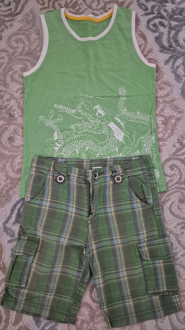 7-8 yaşa uyumlu. çok çok tatlı bir takım. tişört yumuşacık hiç terletmez şort kargo cepli çok orijinal