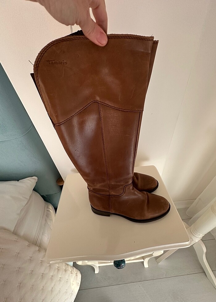 Almanya’dan almış olduğum çizmeler yumuşak gerçek deridir. Rengi duruşu ve rahatlığı ile ilgili sorunsuzdur. Tamaris derisi ile meşhur bir firmadır Alana şimdiden hayırlı uğurlu olsun.