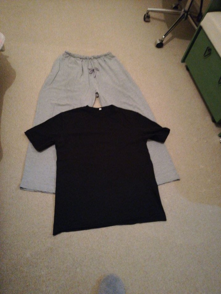 Erkekler için gri , bol kesim alt ve siyah kısa kollu, yuvarlak yaka üstten oluşan sade ve rahat pijama takımı. 2li fiyatdır.alt xl ama 2xl bedenlerede olur.beli 54 cm kadar esniyor.tşört terteniz 2xl beden.