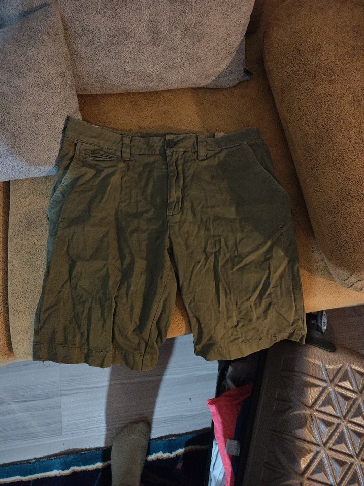 yurt dışından alındı. yeşil renk haki yeşili renginde erkek şort . 32 bedendir. sol cebinde cep bölümünde dikiş açılmış azıcık dikilmesi gerekiyor fotoğrafını çektim ekledim son fotoğraflara bakabilirsiniz. bir de cep bölümünde yırtık modeli vardır o kendi modelinden dolayı öyledir tarzı öyledir