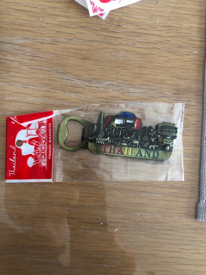 Renkli ve vintage Tayland temalı anahtarlık, şişe açacağı özellikli ve haki tonlarında, rock punk havasında bir tasarıma sahip.