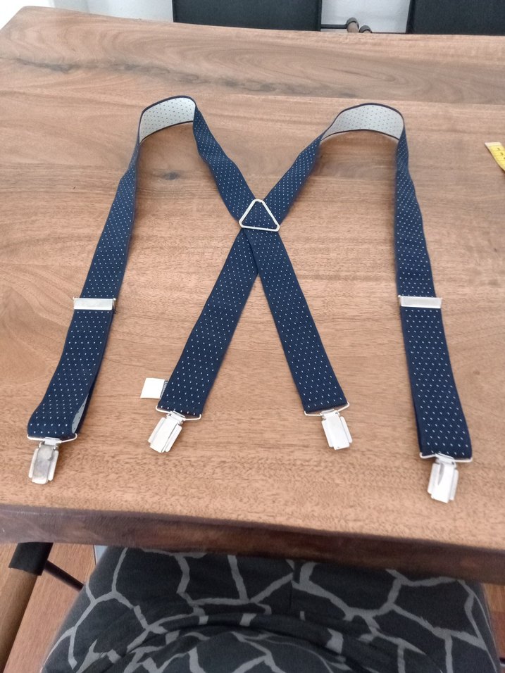 Koyu mavi, ayarlanabilir, tokalı Erkek pantolon askısı, metal klipsli, sentetik kumaştan, sokak stili için uygun.