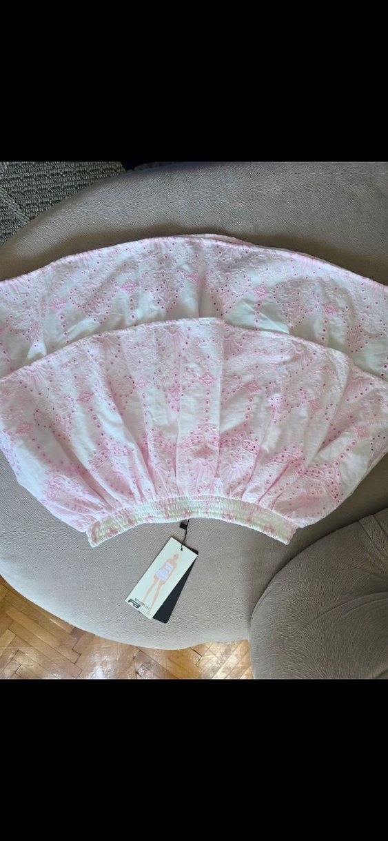 yurtdısından Newyorker Pembe Nakışlı Volanlı Midi Etek