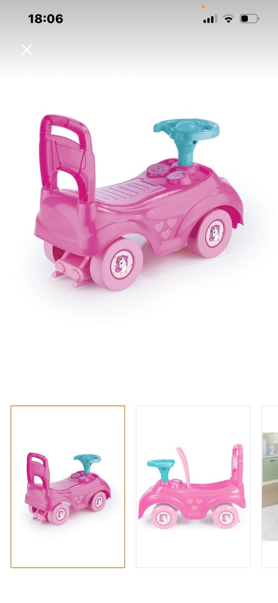 Mavi direksiyonlu, pembe renkli unicornlu ilk adım araba. Kalp desenleri ve dayanıklı tekerlekleriyle çocuklar için uygun. Yürümeye destekli kornalı sırt destekli bagajı açılır şık sıfır ürün