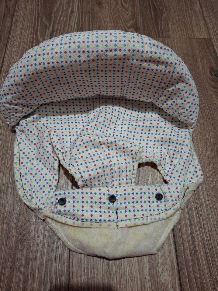 Pastel çok renkli noktalı, ayarlanabilir düğmeli yumuşak bebek kanguru. Rahat taşıma sağlar.