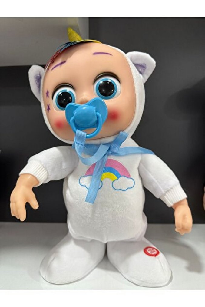 Beyaz renkli, pastel tonlarda gökkuşağı ve bulut desenli kıyafete sahip bebek. Yüzünde büyük gözler ve yıldız detayları bulunur.