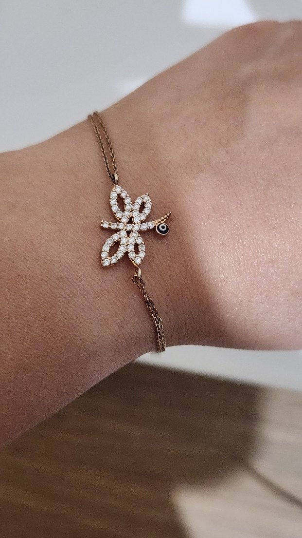 Küçük taşlarla süslenmiş çiçek desenli, ince zincir detaylı gümüş bileklik, günlük kullanım için uygundur.