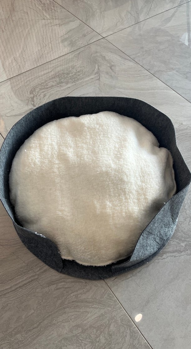 Gri tabanlı yuvarlak beyaz yumuşak minder, rahat destek sağlar. ️