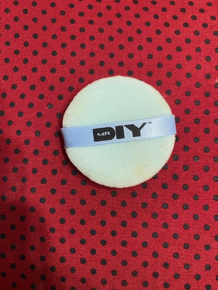 Yuvarlak, yumuşak dokulu makyaj süngeri üzerinde MR DIY yazılı bant bulunur.