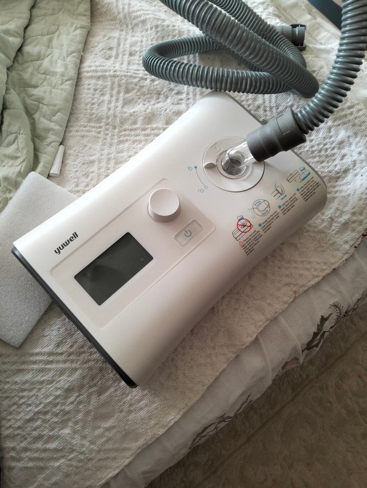 Beyaz ve gri renklerde Yuwell kişisel bakım cihazı, dijital ekran ve kontrol düğmesi ile birlikte esnek hortum aparatı içerir. ⚙️