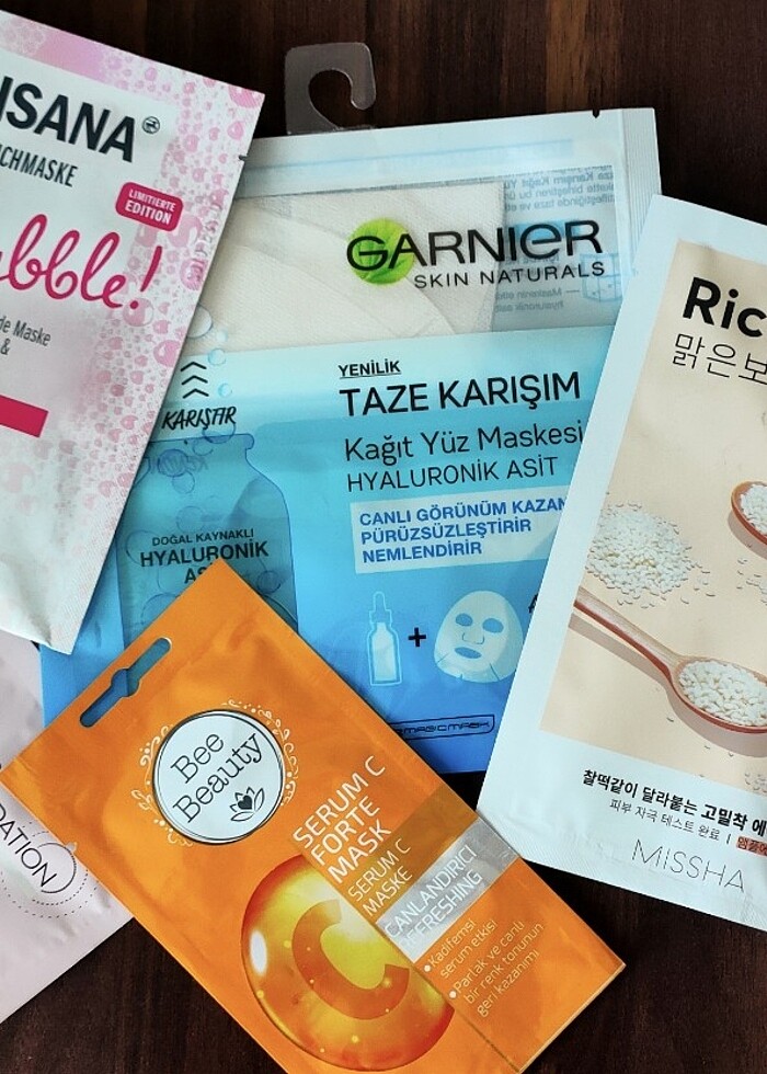 Açılmamış 4 adet kağıt yüz maskesi sktleri geçtiği ve cildim hassas olduğu için satıyorum. SKT'leri 2023 ve 2024 yılları içindedir. Buna göre alım yapın lütfen isteyene tekli olarak ta ilan açabilirim. ✅ Garnier Hyaluronik Asit Karıştırmalı Maske ✅ Bee Beauty C Vitamini Maske ✅ Missha Rice Sheet Pirinç Maskesi ✅ ISANA Bubble Mask