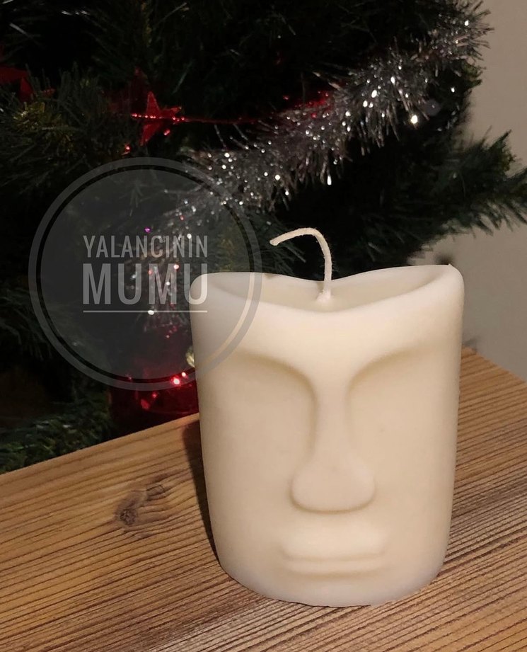Bu beyaz mum, yüz figürü şeklinde tasarlanmış olup dekoratif bir dokunuş sağlar , soya wax kullanılmaktadır. Pürüzsüz, açık renk mumdan yapılmıştır.İstenilen renk ve kokuda çalışılabilir.