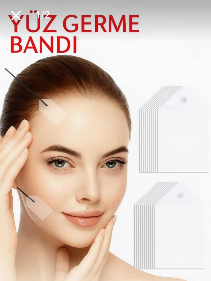Cildi destekleyip sıkılaştırmaya yardımcı yüz germe bantları. Kolay uygulanır, günlük kullanıma uygundur. Çoklu paket içerir.