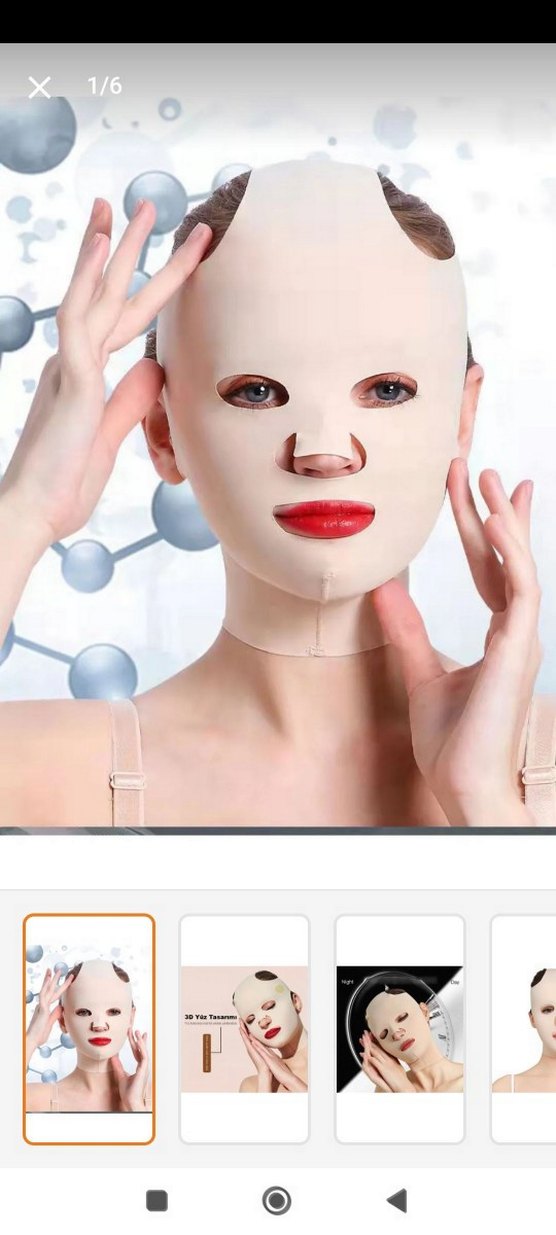 Göz, burun ve ağız için kesikleri olan bu yüz maskesi, cildi sıkılaştırarak yüz hatlarını belirginleştirir. Cilt elastikiyetini artırmaya yardımcıdır. ♀️az kullanıldı