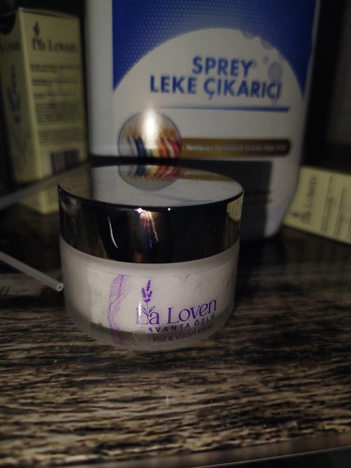 yüz ve vücut kremi, ciltteki lekelerin görünümünü azaltmaya yardımcı olur, lavanta desenli.