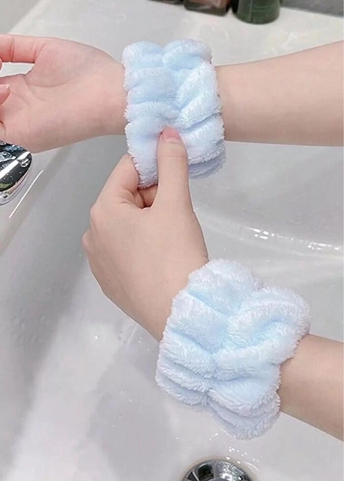 0 paketli ürün Mavi Renk Su Emici Havlu Bilek /Yuz Yıkama Kol Bandı /Sporcu Spa Bileklik