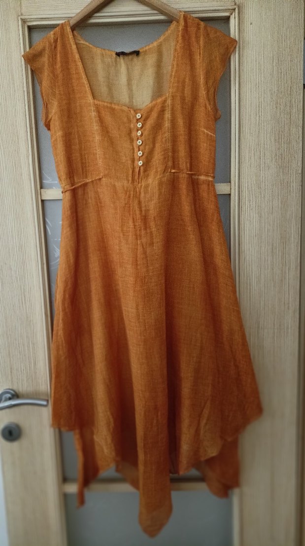 Bej renkli, uzun keten elbise, drapeli tasarımı, V yakası ve kolsuz kesimi ile bol bir uyum sunar. Vintage bohem tarzını yansıtır. sorunsuz iki kat bel en tek taraf 45 cm koltuk altı en 49 cm boy uzun kısım 135 cm yanlar boy 108 cm
