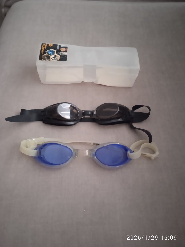 İki Adet Yüzücü Gözlüğü. Tatilde kullanıldı. Kılcal çizikler olabilir. Mavinin lastikleri sararardı, siyahın da bir tarafını bağlayarak kullandık. Fotoğraflarda mevcut. Fiyat ikisi için de geçerlidir.
