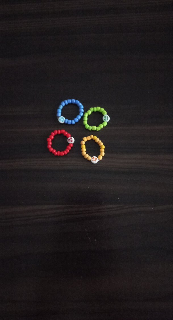 Gülümseyen yüz boncuklu, renkli boncuklardan oluşan minimalist ve bohem tarzda kadın bileklikler.