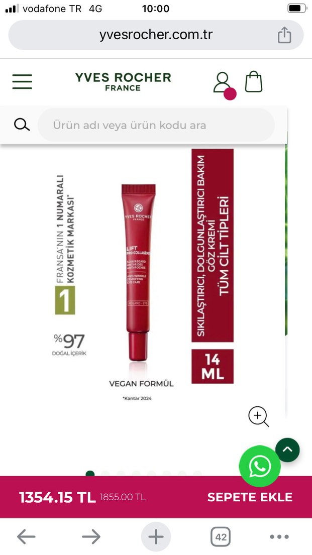 Yves Rocher 14 ml vegan formüllü kadın nemlendirici, %97 doğal içeriklidir. Tüm cilt tiplerine uygun sıkılaştırıcı, dolgunlaştırıcı ve yaşlanma karşıtı bakım sağlar.