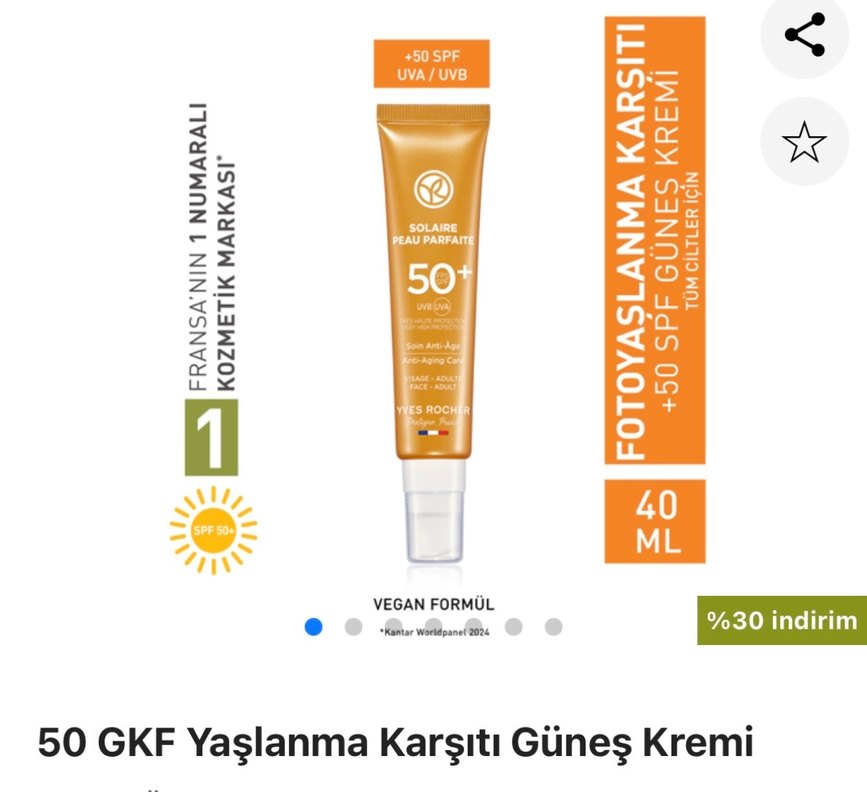 Yves Rocher +50 SPF UVA/UVB korumalı, vegan formüllü yaşlanma karşıtı güneş kremi, 40 ml tüpte sunulur. ☀️ Sıfır kutu