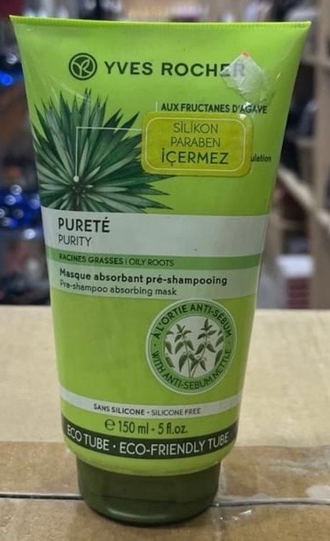 Yves Rocher arındırıcı ön şampuan maskesi, silikonsuz ve parabensizdir. Agave fruktanları ile yağlı köklerden fazla yağı emer. Çevre dostu ambalajda.