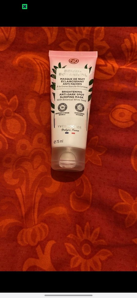 Yves Rocher'in 75 ml'lik aydınlatıcı gece maskesi, botanik beyaz tohum özleriyle koyu lekeleri azaltmaya yardımcı olur ve cilt aydınlığını destekler.