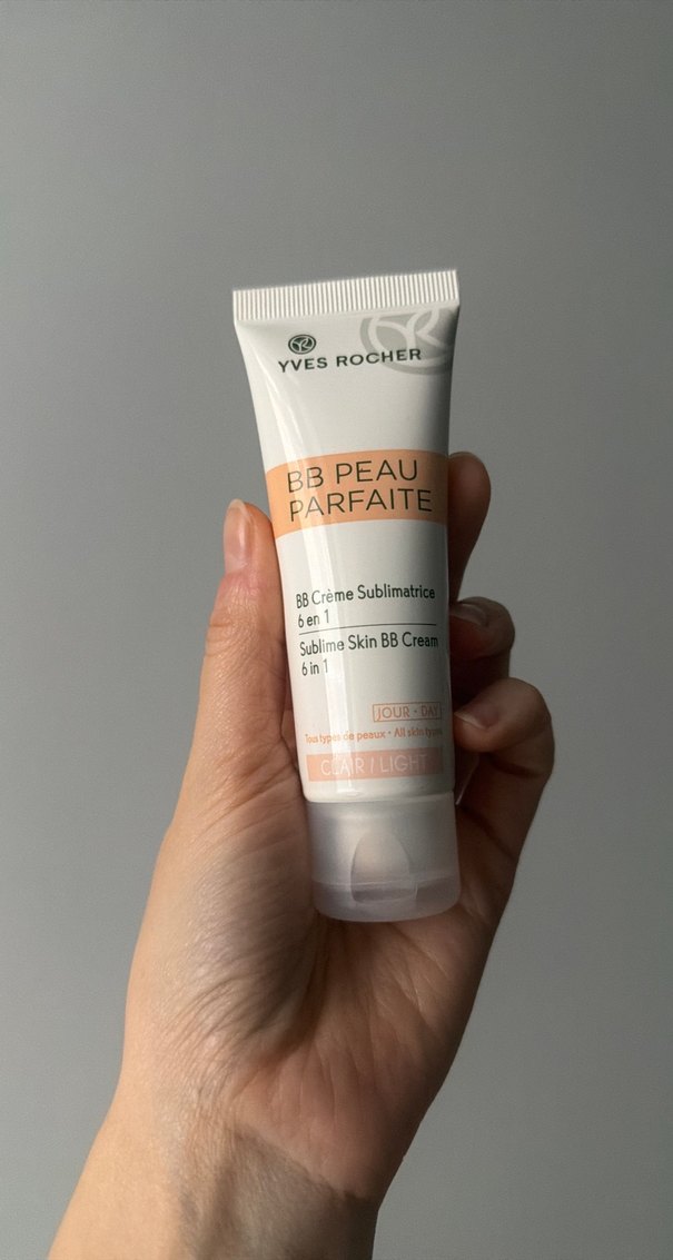 Yves Rocher BB Krem, 6'sı 1 arada formülüyle cilt tonunu eşitler ve hafif kapatıcılık sağlar. Pastel bej tonunda. ✨
