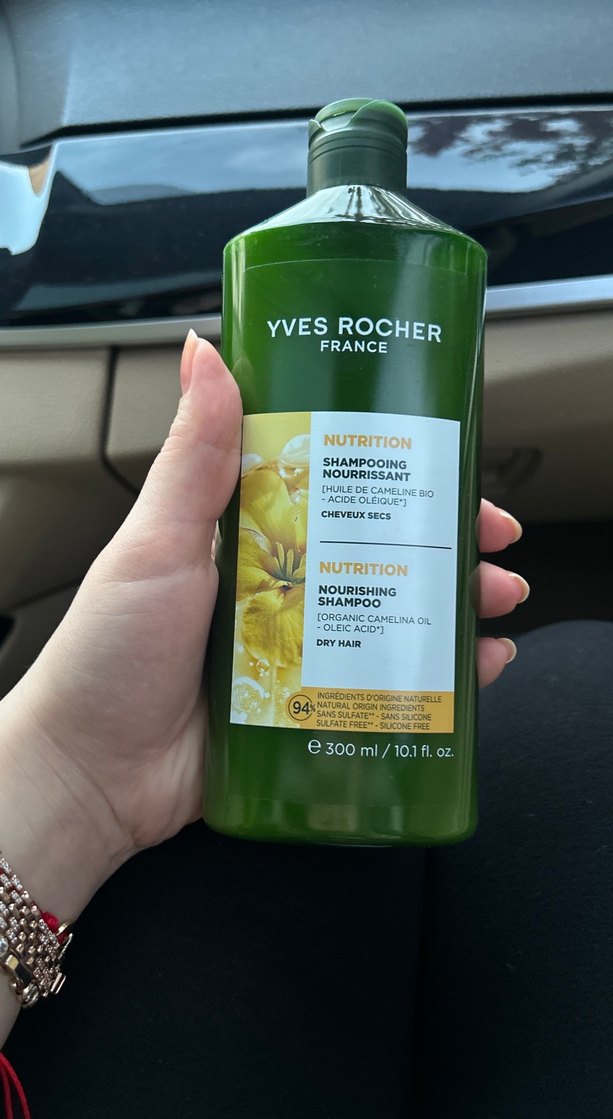 Yves Rocher Besleyici Şampuan, organik kamelya yağı ve oleik asit içerir. Kuru saçlar için besleyici bir formüle sahiptir ve %94 doğal içeriklidir.
