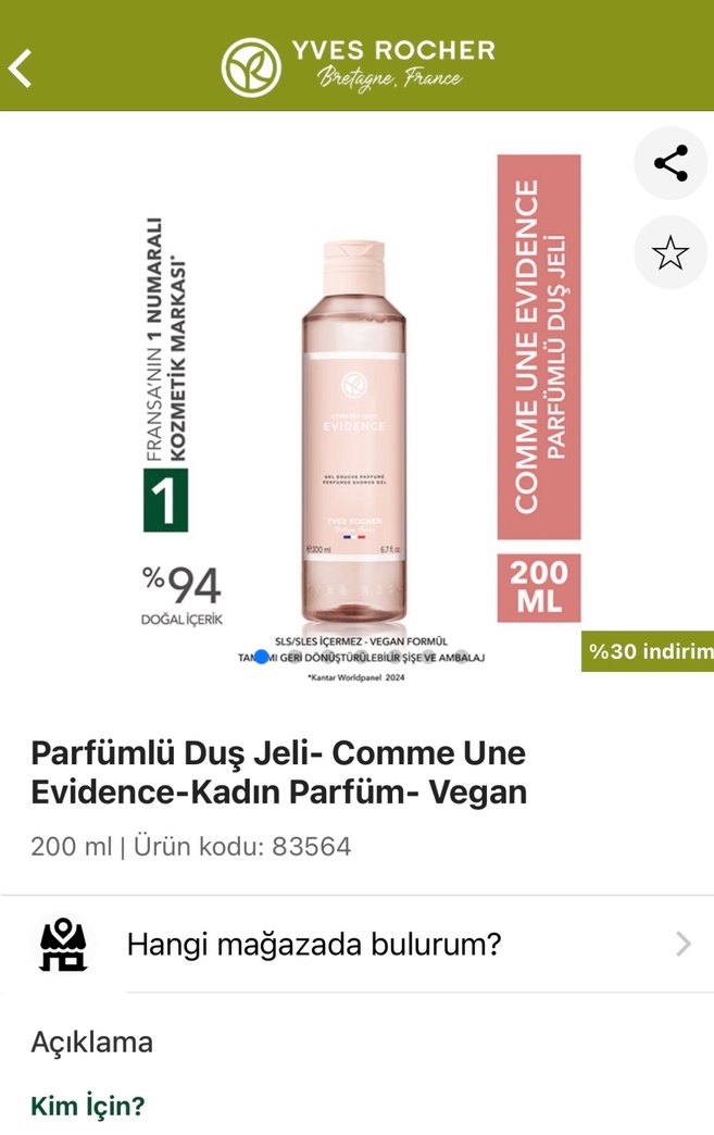 Yves Rocher Comme Une Evidence parfümlü duş jeli 200ml. Sıfır üründür, hiç kullanılmadı. #yvesrocher #sephora