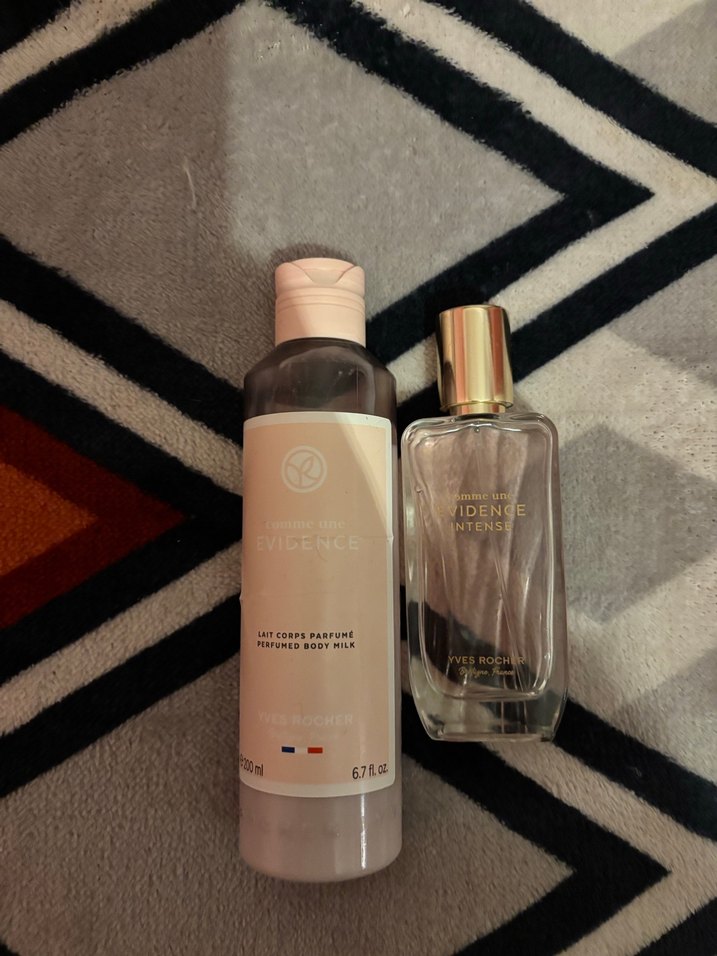 Yves Rocher Confidence Intense kadın parfümü ve eşleşen parfümlü vücut sütü seti. Görselde gözüktüğü kadar kullanılmıştır. Kokusu bana hitap etmediği için satıyorum.