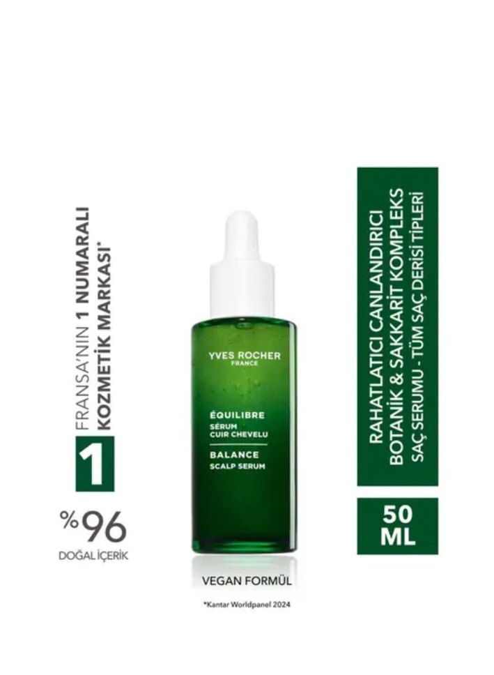 Yves Rocher Dengeleyici Saç Derisi Serumu %96 doğal içerik ve vegan formül ile saç derisini rahatlatır ve canlandırır. 50 ml hacmindedir.