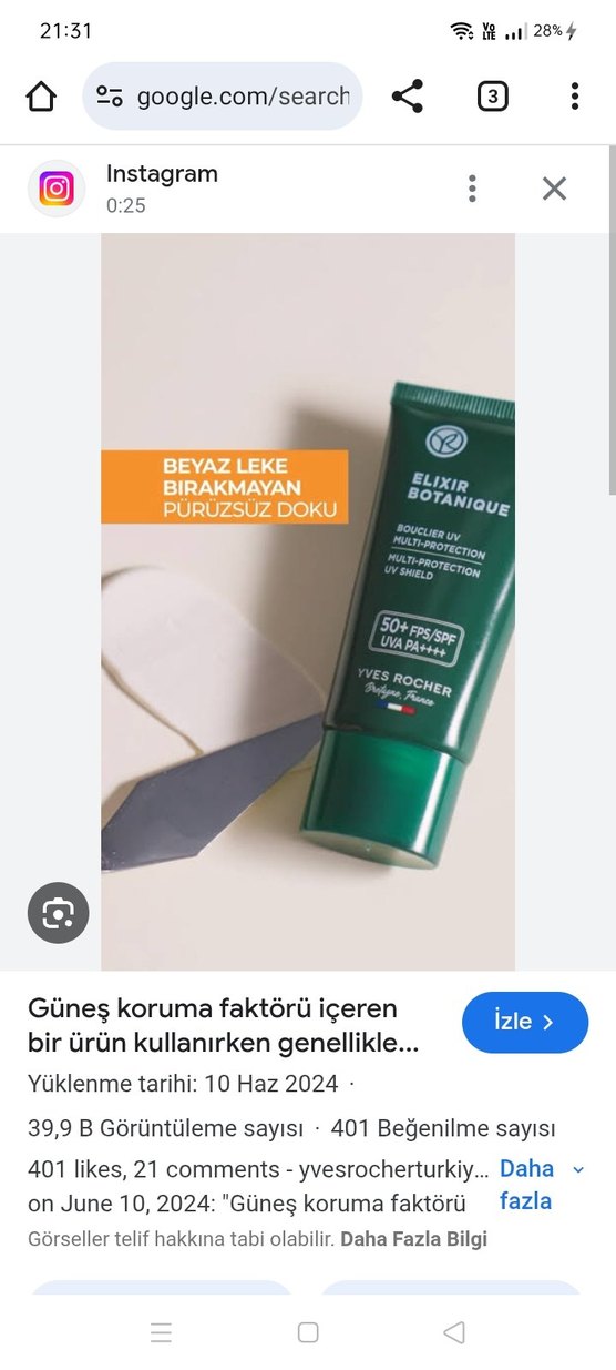Yves Rocher Elixir Botanique, SPF 50 güneş koruması sağlar. Beyaz leke bırakmadan pürüzsüz bir doku sunar.