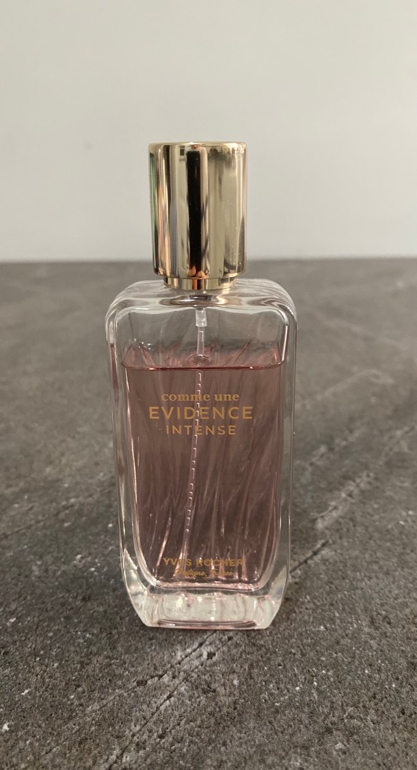 Yves Rocher Evidence Intense kadın parfümü, altın kapaklı şeffaf şişede kalıcı ve zarif bir koku sunar.
